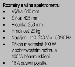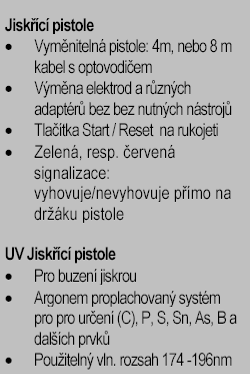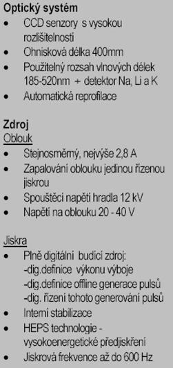- individuelní přesné vyhodnocování intenzity každé jednotlivé jiskry je pro