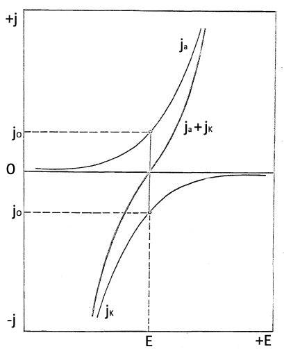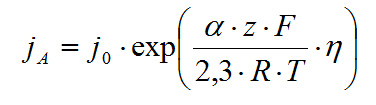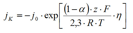 kde jA, jK jsou anodická, resp. katodická proudová hustota,