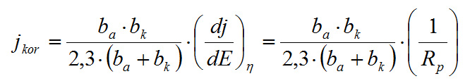Protože hodnoty ba a bk jsou pro daný korozní systém konstantní a v řadě případů tabelované, je rovnice vztahu mezi hodnotami jkor a Rp uváděna ve zjednodušeném tvaru: